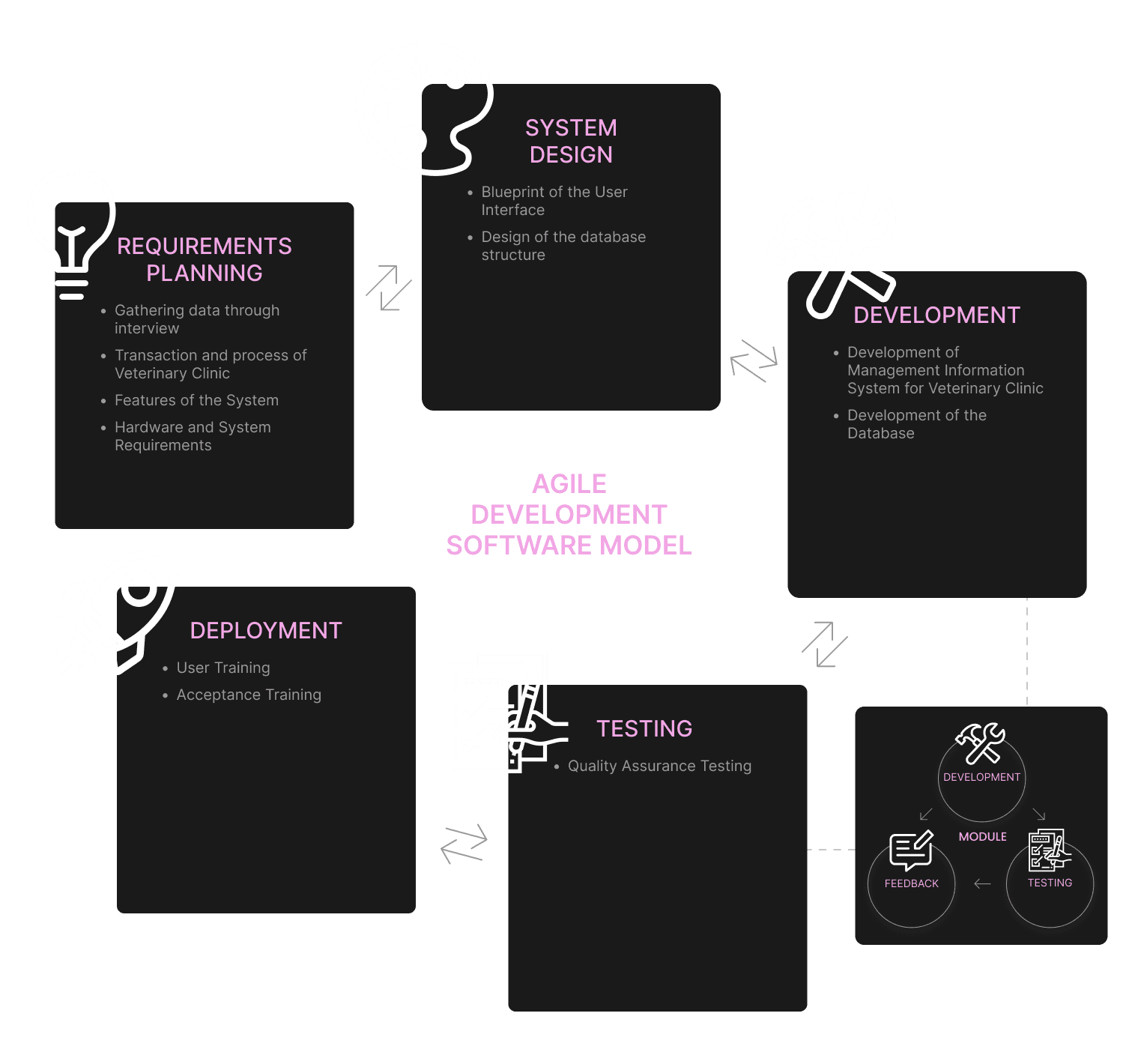 The first stage was Requirements Planning. An interview was conducted to establish a general understanding of the veterinary clinic’s business processes and transactions. Based on the gathered data, the required features of the system were determined, and the hardware and system requirements were identified.