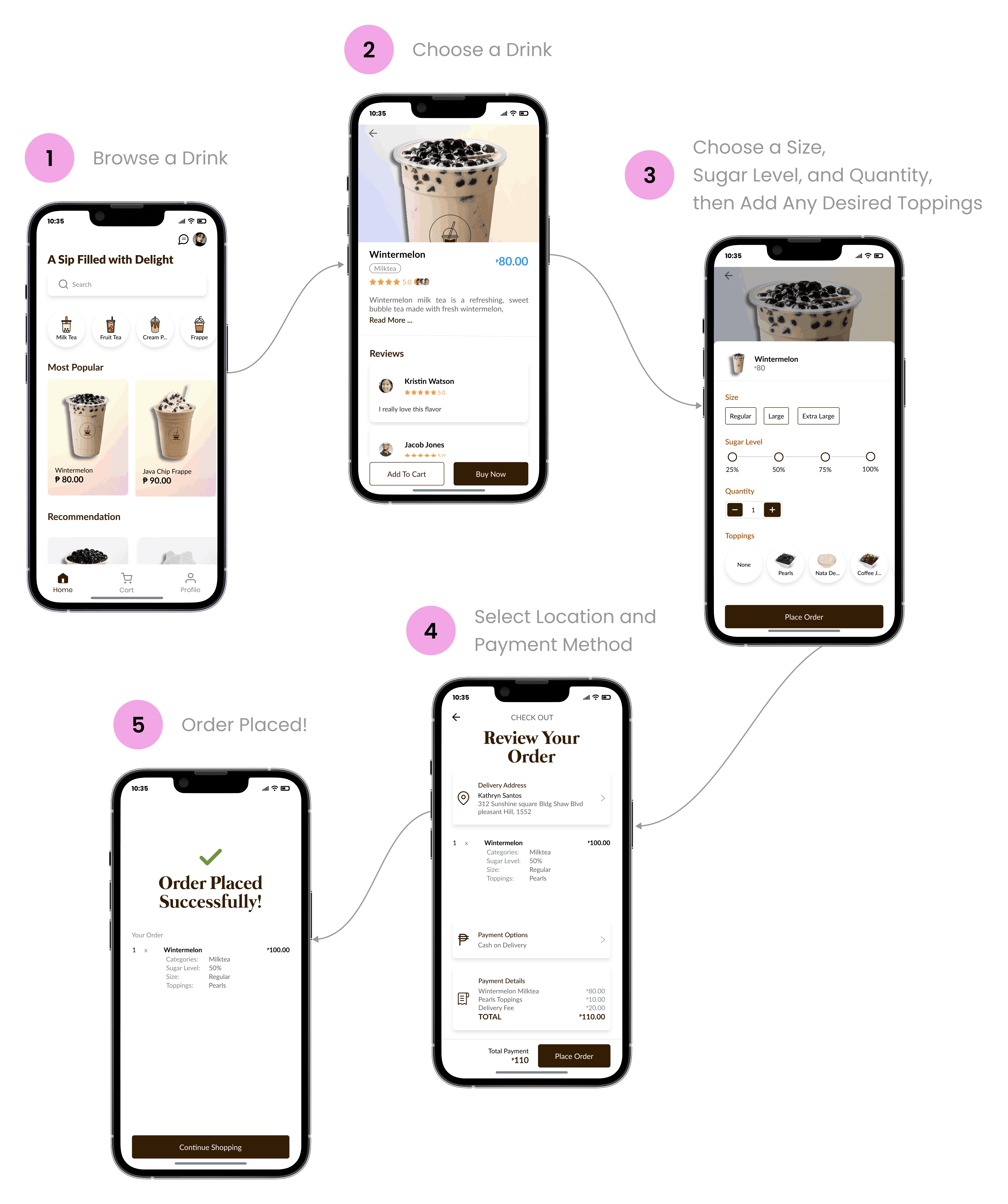 thelTEA is an application that allows users to order and receive milk tea delivered right to their doorstep. It features a diverse range of categories, including milk tea, fruit tea, cream puffs, frappes, rock salt cheese, and hot drinks. Each drink offers a unique flavor designed to tantalize taste buds and provide a satisfying experience.
